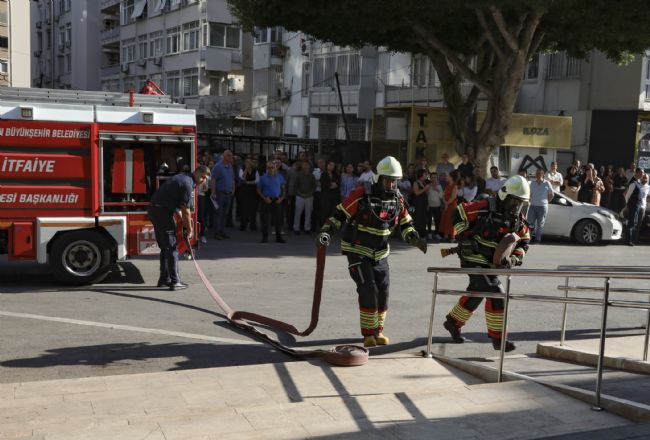 Mersin Büyükşehir Belediyesi Ana Hizmet Binası'nda, muhtemel acil durumlara karşı hazırlık kapsamında yangın tatbikatı yapıldı. Tatbikat senaryosu gereği, birinci katta klima ünitesinden kaynaklanan yangın alarmının devreye girmesiyle birlikte bina tahliye süreci başlatıldı. Yangın alarmının ardından binada çalışan personel tahliye edildi. Tüm binanın tahliyesi standartlara uygun olarak 3,5 dakikada gerçekleştirildi.Tahliye sonrasında birim sorumluları personel yoklamalarını gerçekleştirdi. Senaryo gereği binada kalan bir kişi de olay yerine hızla gelen itfaiye ekiplerince tahliye edildi.