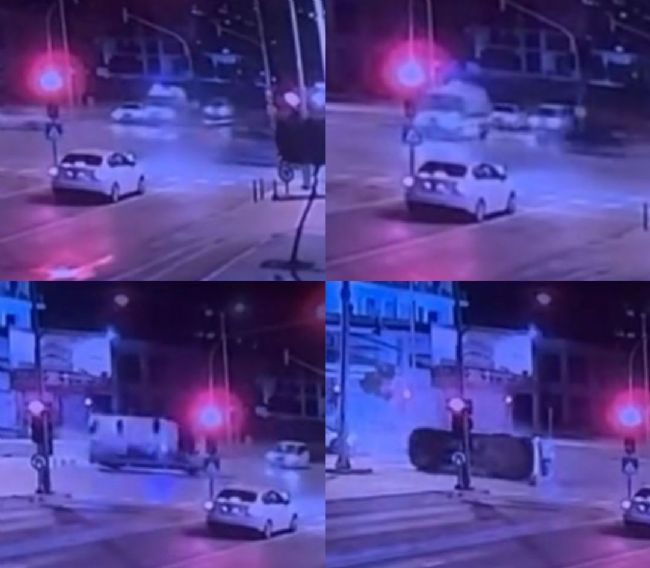 Ortaya çıkan güvenlik kamerası görüntülerinde, sirenleri açık şekilde kavşağa giren ambulansın kırmızı ışıkta geçiş üstünlüğünü kullandığı sırada otomobille çarpıştığı anlar yer aldı. Görüntülerde çarpışmanın etkisiyle ambulansın savrularak yan yattığı ve çevredeki vatandaşların hızla yardıma koştuğu görüldü.