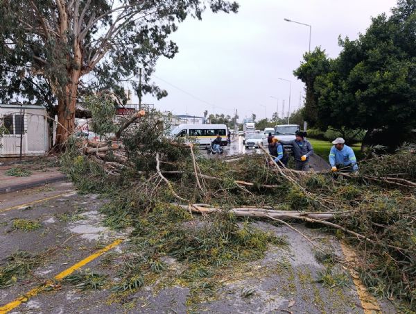 Fen İşleri Müdürlüğü ekiplerinin yol güvenliğini tehdit eden unsurları ortadan kaldırdığı, Park ve Bahçeler Müdürlüğü ekiplerinin ise devrilen ağaçların kaldırılması ve yeşil alanlarda oluşan risklerin giderilmesi için çalışmalarını sürdürdüğü kaydedildi.