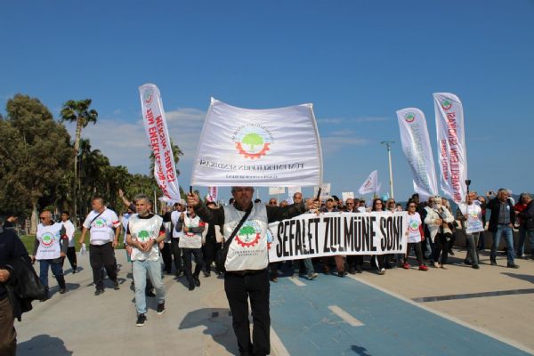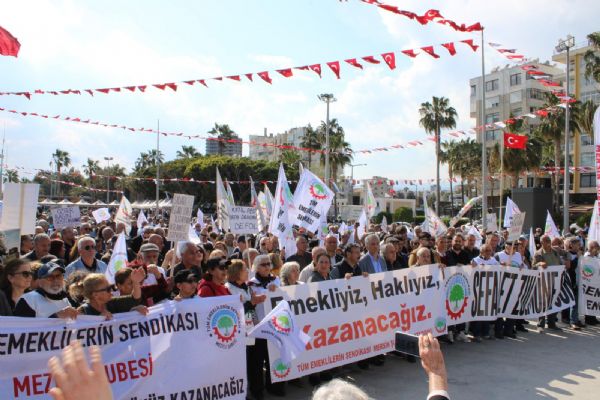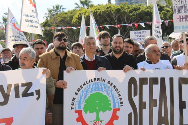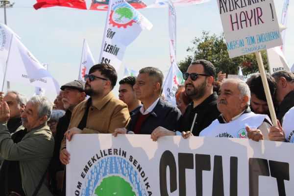 Mersin Kültür Park’taki Mersin İdman Yurdu Meydanı’nda başlayan mitingde, Mersin, Tarsus, Adana, İskenderun, Anamur ve Alanya’dan gelen emekliler bir araya geldi. “Sefalet zulmüne son” yazılı pankart açan emekliler, sloganlar eşliğinde Özgecan Aslan Meydanı’na yürüdü.