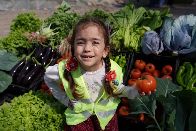 Erdemli Belediyesi Park ve Bahçeler Müdürlüğü'nce hayata geçirilen proje kapsamında, Şehit Musa Özalkan Kreş ve Gündüz Bakımevi'nde eğitim gören öğrenciler, tohumdan hasada kadar tüm süreçlerde aktif rol aldı. Minikler, öğretmenleri ve alanında uzman ekiplerle birlikte sebzelerin üretiminin her aşamasını deneyimledi. 70 gün önce toprakla buluşturulan domates, salatalık, marul, biber ve patlıcan gibi sebzeler büyüdü hasada geldi. Öğrenciler de Erdemli Belediye Başkanı Mustafa Kara ile birlikte ürünlerin hasadını gerçekleştirdi.