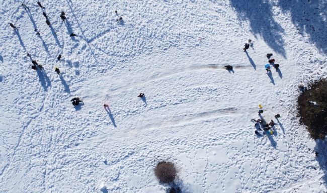 Karın tadını çocuklar çıkardı: Kimi leğenle kimi naylonla kaydı