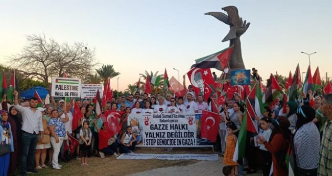 Mersin’de bir araya gelen Filistin destekçisi grup, Gazze’ye insani yardım ulaştırmak amacıyla yola çıkan Küresel Sumud Filosu’na olan destekl...