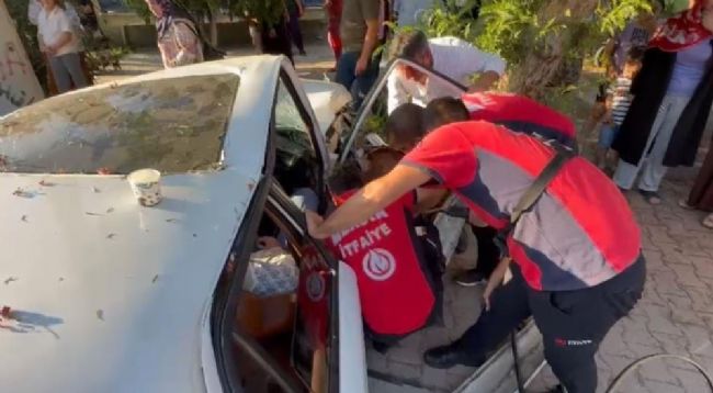 Otomobilde sıkışan yaralı kapı kesilerek çıkarıldı