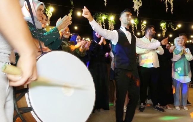 Mersin’in Erdemli ilçesinde bir çiftin evleri kundaklandığı için yarım kalan düğünü, ilçe esnafının imece usulü topladığı para ile gerçekleştirildi. Yüzlerce davetlinin katıldığı düğünde çift ve ailesi burukta olsa sevinç yaşadı.