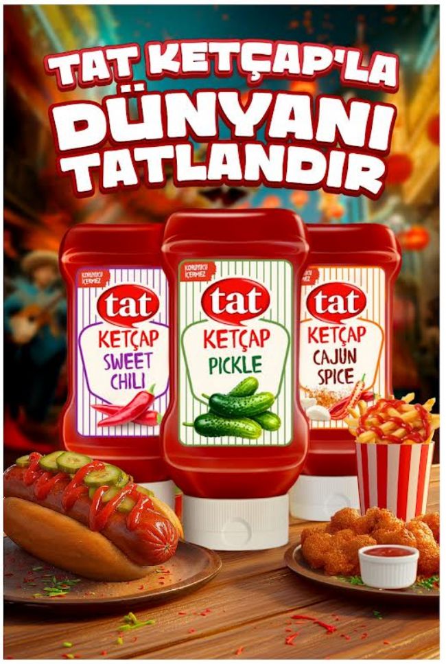 “Tat Ketçap Pickle”, “Tat Ketçap Sweet Chili” ve “Tat Ketçap Cajun Spice” olmak üzere üç farklı lezzetten oluşan yeni seri, “Tat Ketçap’la Dünyanı Tatlandır” sloganıyla tüketiciyle buluştu. Global markaların peş peşe turşulu ürünler geliştirdiği bu dönemde Tat Ketçap Pickle, hamburgerden hotdog’a kadar her lokmaya ferah, canlı ve benzersiz bir lezzet katıyor. Dünya mutfaklarının vazgeçilmez tatlı–acı uyumunu bambaşka bir boyuta taşıyan Tat Ketçap Sweet Chili ise tavuktan deniz ürünlerine, noodle’dan atıştırmalıklara kadar Uzak Doğu esintili lezzetlere eşsiz bir dokunuş katarken gurme sofraların ve şeflerin yeni gözdesi olmaya aday. Louisiana mutfağının vazgeçilmez baharat karışımından ilham alan Tat Ketçap Cajun Spice da aromatik ve hafif acımsı karakteriyle et yemeklerine, ızgaralara ve patates kızartmalarına yepyeni bir boyut katıyor. Gurme bir dokunuş arayanlar için her lokmada farklı bir deneyim sunuyor.
