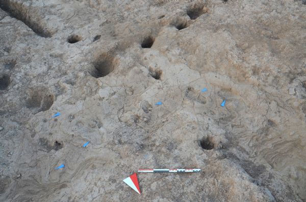Hatay'ın Reyhanlı ilçesi Karahüyük Mahallesi'ndeki Tell Kurdu Höyüğünde yürütülen kazılarda, günümüzden 7 bin 200 yıl öncesine ait 5 insan ayak izi gün yüzüne çıkarıldı. Kazı Başkanı Arkeolog Doçent Dr. Rana Özbal, ölçülebilir nitelikte olan ayak izlerinden birinin 38 numara olduğunu ve diğerinin daha büyük olduğunu söyledi.