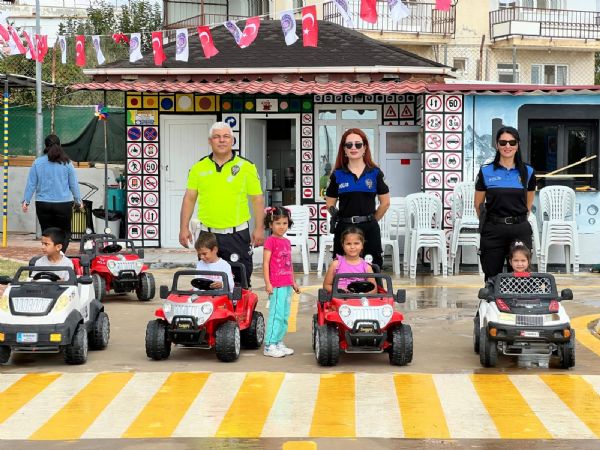 Silifke İlçe Emniyet Müdürlüğü Trafik Eğitim Parkı'nda yeni eğitim yılının ilk programı gerçekleştirildi. Anaokulundan gelen 40 öğrenciye polisler tarafından teorik trafik eğitimi verildi. Ardından akülü araçlara bindirilen çocuklar, parkurda uygulama yaparak trafik kurallarını eğlenceli bir şekilde öğrendi.