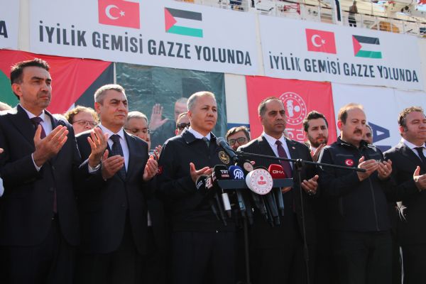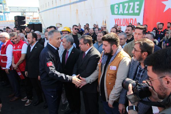 Mersin limanından '17. İyilik Gemisi 'Akdeniz'i uğurlayan İçişleri Bakanı Ali Yerlikaya," Cumhurbaşkanımızın liderliğinde, İsrail'in Gazze'ye yönelik soykırımın son bulması, sivillerin korunması ve insani yardımların kesintisiz olarak ulaştırılması için, yoğun bir diplomasi yürütmüştür, yürütmeye de devam etmektedir. Türkiye olarak biz, işgalin ilk anından itibaren tarihin doğru tarafında yer aldık, Gazzeli kardeşlerimizin yanında dimdik durduk. Bizim devlet geleneğimizde taraf bellidir. Biz, mazlumun yanında, zalimin karşısındayız" dedi.