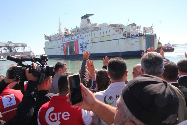 AFAD koordinasyonunda, 17 sivil toplum kuruluşunun desteğiyle hazırlanan insani yardım malzemelerini Gazze'ye ulaştıracak olan 17. İyilik Gemisi, İçişleri Bakanı Ali Yerlikaya'nın katıldığı törenle Mersin Limanı'ndan uğurlandı. Bakan Yerlikaya'nın yanı sıra Bakan Yardımcısı Münir Karaloğlu, AFAD Başkanı Ali Hamza Pehlivan, Mersin Valisi Atilla Toros, AK Parti Mersin Milletvekili Ali kıratlı, sivil toplum kuruluşu temsilcileri ve çok sayıda davetlinin katıldığı törende dualar eşliğinde uğurlanan Akdeniz isimli gemide 50 tırlık yaklaşık 900 ton gıda ve hijyen malzemelerinin yer aldığı belirtildi. Yardım malzemelerinin Gazze'ye ulaştıktan sonra AFAD ve Kızılay koordinasyonunda dağıtılacağı bildirildi.