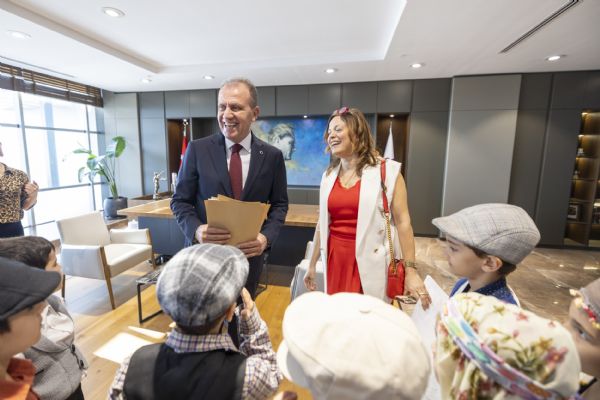 Cumhuriyetin 102’nci yılı kutlamaları kapsamında Dr. Kamil Tarhan İlkokulu öğrencileri Türkiye Belediyeler Birliği (TBB) Başkan Vekili ve Mersin Büyükşehir Belediye Başkanı Vahap Seçer’i ziyaret etti. Öğrenciler, hem renkli hem de duygusal anlara sahne olan buluşmada, kendi hazırladıkları 'cumhuriyet ilan edildi' temalı gazetelerini Başkan Seçer’e sundu.