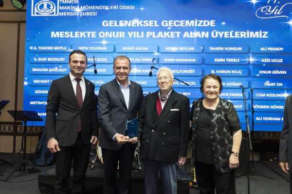 Türkiye Belediyeler Birliği (TBB) Başkan Vekili ve Mersin Büyükşehir Belediye Başkanı Vahap Seçer, Türk Mühendis ve Mimar Odaları Birliği (TMMOB) Makina Mühendisleri Odası (MMO) Mersin Şubesi’nin 71. yılı dolayısıyla düzenlenen ‘Geleneksel Kutlama Gecesi’ne katıldı. Program kapsamında meslekte 60. yılını dolduran Ahmet Tuncer Mutlu’ya plaketi, Başkan Seçer tarafından takdim edildi.