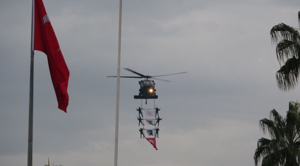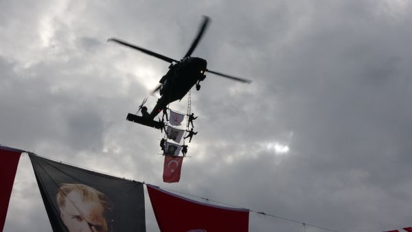 Törende, Jandarma Genel Komutanlığına bağlı komando birliğinin silahlı hareketi ile Özel Asayiş Komutanlığı (JÖAK) personeli tarafından helikopter ile gerçekleştirilen ‘üzüm salkımı' gösterisi büyük ilgi gördü. Cumhuriyet Meydanı üzerinde birkaç tur atan helikopterden sarkan jandarma ekipleri, görsel şölen sundu. Vatandaşlar, gösteriyi cep telefonlarıyla kaydetti.