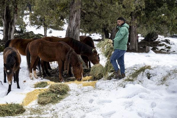 Mersin'de kış mevsiminin en çetin yaşandığı bölgelerden biri olan Karboğazı'nda, yoğun kar yağışı nedeniyle otların azalması ve bitki örtüsünün kar altında kalması, yılkı atlarının besine ulaşmasını zorlaştırıyor. Toros Dağlarının yüksek kesimlerinde yaşayan yaban hayvanlarının bu zorlu süreçte besinsiz kalmaması için harekete geçen Büyükşehir Belediyesi ekipleri, her yıl olduğu gibi bu yıl da yılkı atları için özel bir besleme çalışması gerçekleştirdi. Ekipler yılkı atlarını, yonca ile birlikte besin ihtiyaçlarına göre hazırlanmış, arpa flake, mısır flake ve toklu besi yeminden oluşan rasyonla besledi. Çalışma kapsamında bölgede yaşayan yabani köpekleri de unutmayan ekipler, onlar için de mama bıraktı.