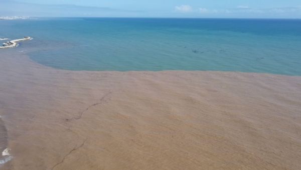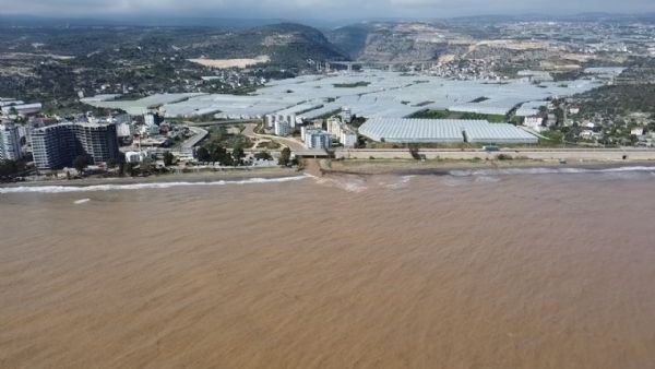 Mersin’de yağışlarla birlikte coşan dereler Akdeniz’i çamura bürürken, bölge havadan görüntülendi.