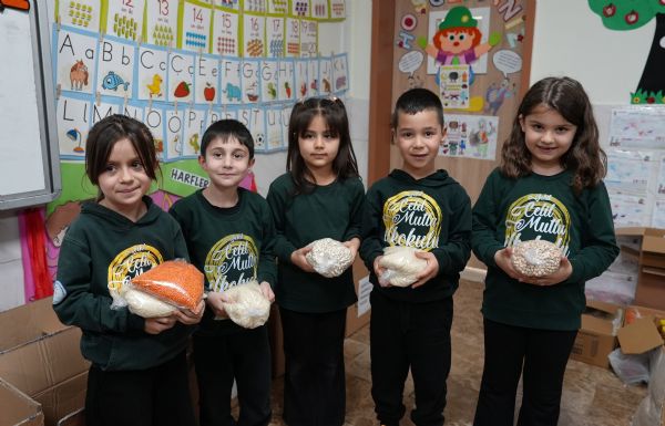 Mersin'in Erdemli ilçesinde minik öğrenciler, Ramazan etkinlikleri kapsamında ihtiyaç sahipleri için yardım paketi hazırlayarak Türkiye Diyanet Vakfı'na teslim etti.