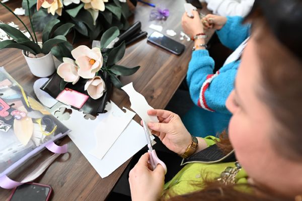 Profesyonel ekipmanlar ve uzman el sanatları eğitmeni ile ücretsiz olarak verilen kurs 23 katılımcı ile yoluna devam ediyor. Farklı materyaller ile yapılan rengarenk çiçekler adeta gerçeğinden ayırt edilemiyor. Kurs aracılığıyla yeteneklerini geliştiren kadınlar el emeği ile; özel günler için süslemeler, gelin çiçeği, mağaza ve sergi vitrinleri için süsleme çiçekleri, çeyiz süsleri, konvoy ve araç süslemeleri, ev dekorasyonu ve iç mekan tasarımları kapsamındaki vazo, masa, antre süsleri, kapı çelenkleri, duvar panoları, ofis ve oteller için özel süslemeler ve aranjmanlar yapabiliyor.