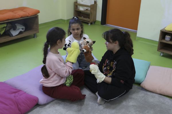 6 haftalık bir atölye planı hazırladıklarını ve çalışmalara nezaket kurallarıyla başladıklarını belirten Önal, “Arkadaşlarımızla, ailemizle iyi iletişim kurma üzerinden başlayıp belirli gün ve haftaları da değerlendiriyoruz. Her özel günü olabildiğince çocuklara farkındalık kazandırarak öğretiyoruz. Çocuklar salı-cumartesi arası her gün buraya gelebiliyorlar. Hem okuma alışkanlığı ve özgüven kazanıyorlar hem de kendilerini ifade etme becerilerini destekliyoruz” diye konuştu. Masal ve Drama Atölyesi’nde ebeveynlerle ve çocuklarla mahremiyet eğitimi üzerine çalışmalar yaptıklarını da anlatan Önal, “Bu çalışmalarımızı drama çalışmalarıyla destekliyoruz. Aynı zamanda atölyemizde avukatlarımızın ve psikologlarımızın geldiği çalışmalar da yapıyoruz. Çocuk hakları ve akran zorbalığı üzerine çalışmalar yaptık” ifadelerine yer verdi.