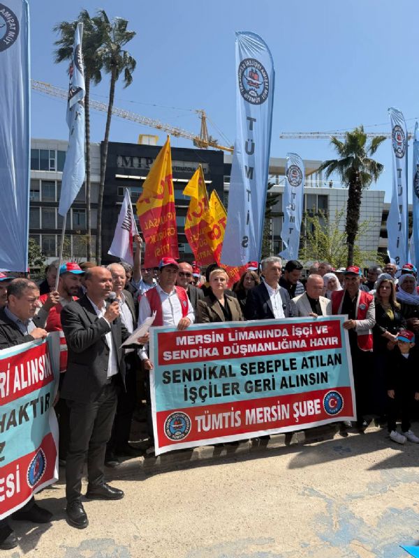 Mersin Uluslararası Liman İşletmeciliği (MIP) ve taşeron şirketi Özgüneş Taşımacılık tarafından işten çıkartılan 180 işçinin direnişi 103 günü geride bıraktı. 103. günde yapılan eylemdebTümtis üyesi işçiler aileleriyle beraber MIP binası önüne kadar yürüdüler.