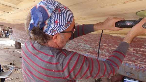Tekne tamirlerinde çalışan ustalardan Öner Sanel, "Teknenin bakımlarını, onarımlarını yapıyorum. Macununu, boyasını, ağacını değiştiriyorum. Kırık kaburgaları varsa onları değiştiriyorum, hazırlıyorum. Tekne denize inecek vaziyete getiriyoruz" şeklinde konuştu.