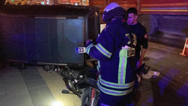 Mersin’in Erdemli ilçesinde kırmızı ışık ihlali yapan hafif ticari araç motosiklete çarparak devrildi, kazada 3 kişi yaralandı. |