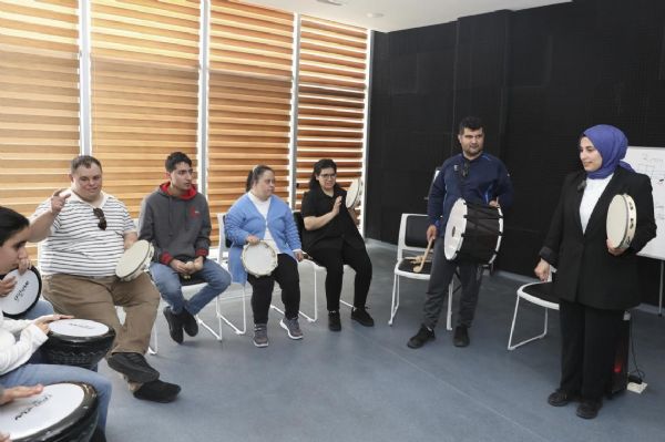 Büyükşehir Belediyesi Engelsiz Yaşam Merkezinde düzenlenen Müzik Atölyesinde özel bireyler, hem ritim ve nota öğreniyor hem de eğlenerek kendilerini ifade ediyor. Özel bireylerin sosyal, kültürel ve sportif faaliyetlerini sürdürebilmeleri için kurulan Engelsiz Yaşam Merkezi, engelli ve ailelerin hayatlarına bu kez de müziğin tınısıyla dokunuyor.