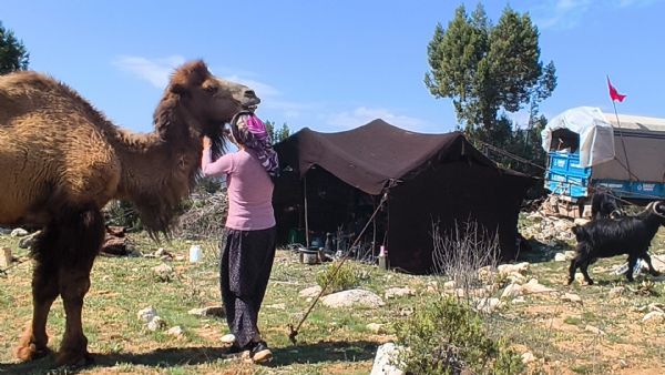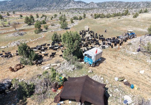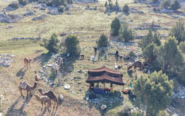 Deve sırtında sürdürülen göç yolculuğu dron ile de görüntülenirken, Toroslar'ın doğal dokusu içinde ilerleyen kervan ve keçi sürüleri görsel şölen oluşturdu.
