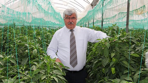 Mersin Akdeniz Ziraat Odası Başkanı Musa Yılmaz da Kazanlılı üretici Süleyman Yaman’ın serasında hasada devam eden işçileri yalnız bırakmayarak, onlarla birlikte biber topladı.