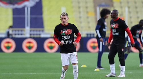 Spor Toto Süper Lig'in 41. haftasında Sivasspor'u konuk eden Fenerbahçe'de futbolcular, maç öncesi ısınmaya üzerinde "Özgür Filistin" yazılı tişörtlerle çıktı. Sarı lacivertliler, Ülker Stadı'nda oynanacak Sivasspor maçı öncesi, İsrail polisinin, işgal altındaki Doğu Kudüs’te yer alan Mescid-i Aksa'daki Filistinlilere müdahalesine tepki gösterdi.