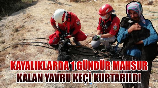 KAYALIKLARDA 1 GÜNDÜR MAHSUR KALAN YAVRU KEÇİ KURTARILDI |