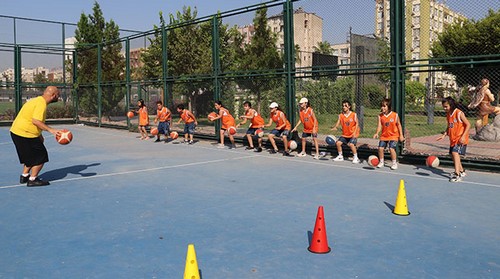 Mersin Akdeniz Belediyesi, öğrencilerin yaz tatillerini daha verimli geçirebilmeleri, sağlıklı bir şekilde gelişim gösterebilmeleri adına başlattığı yaz okullarındaki eğitimler son hızıyla devam ediyor. Ümit Yaşar Oğuzcan Parkı içerisinde bulunan basketbol sahasında süren eğitimlere 6-13 yaş arasında 150 çocuk katılım gösteriyor.
